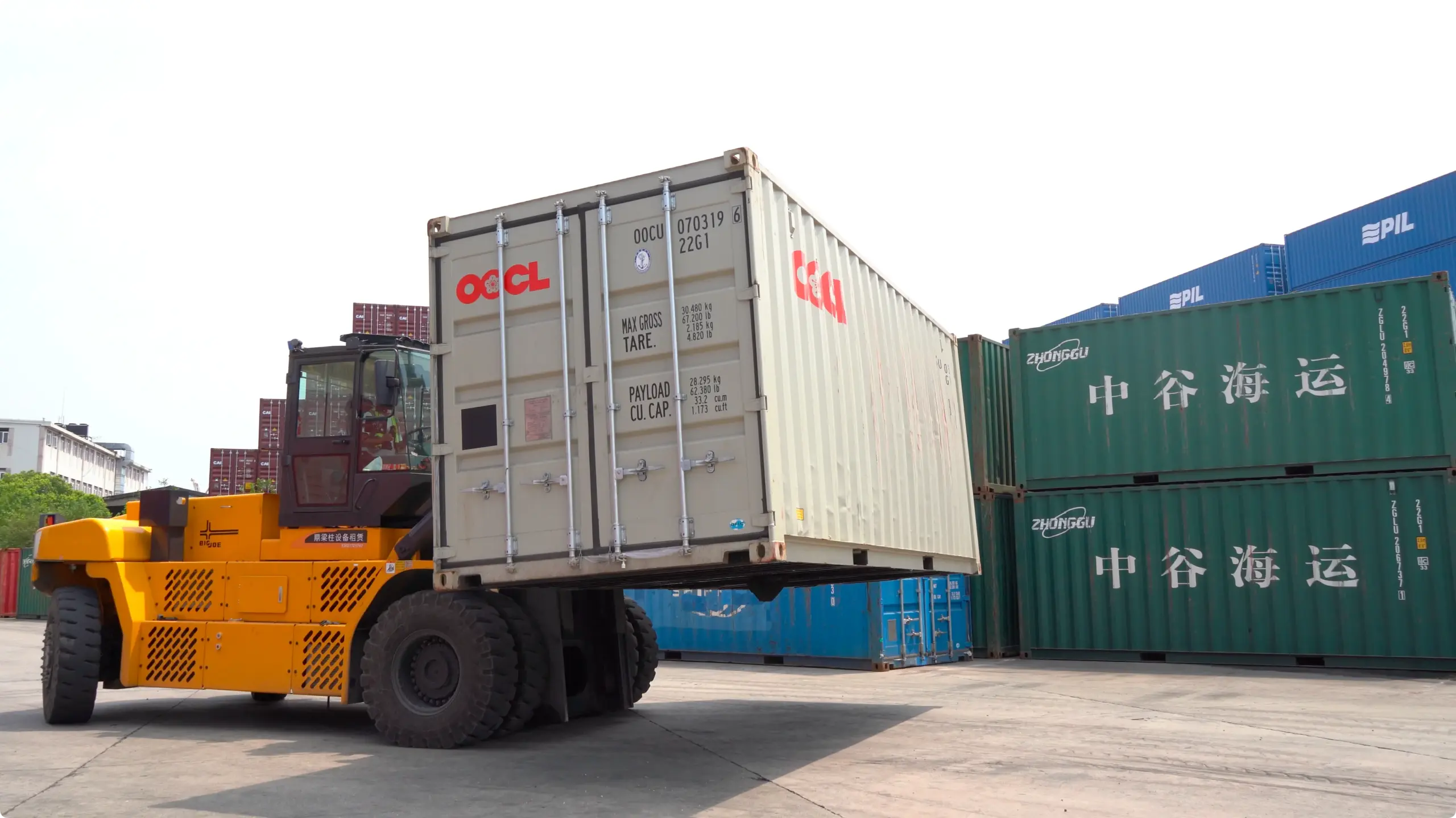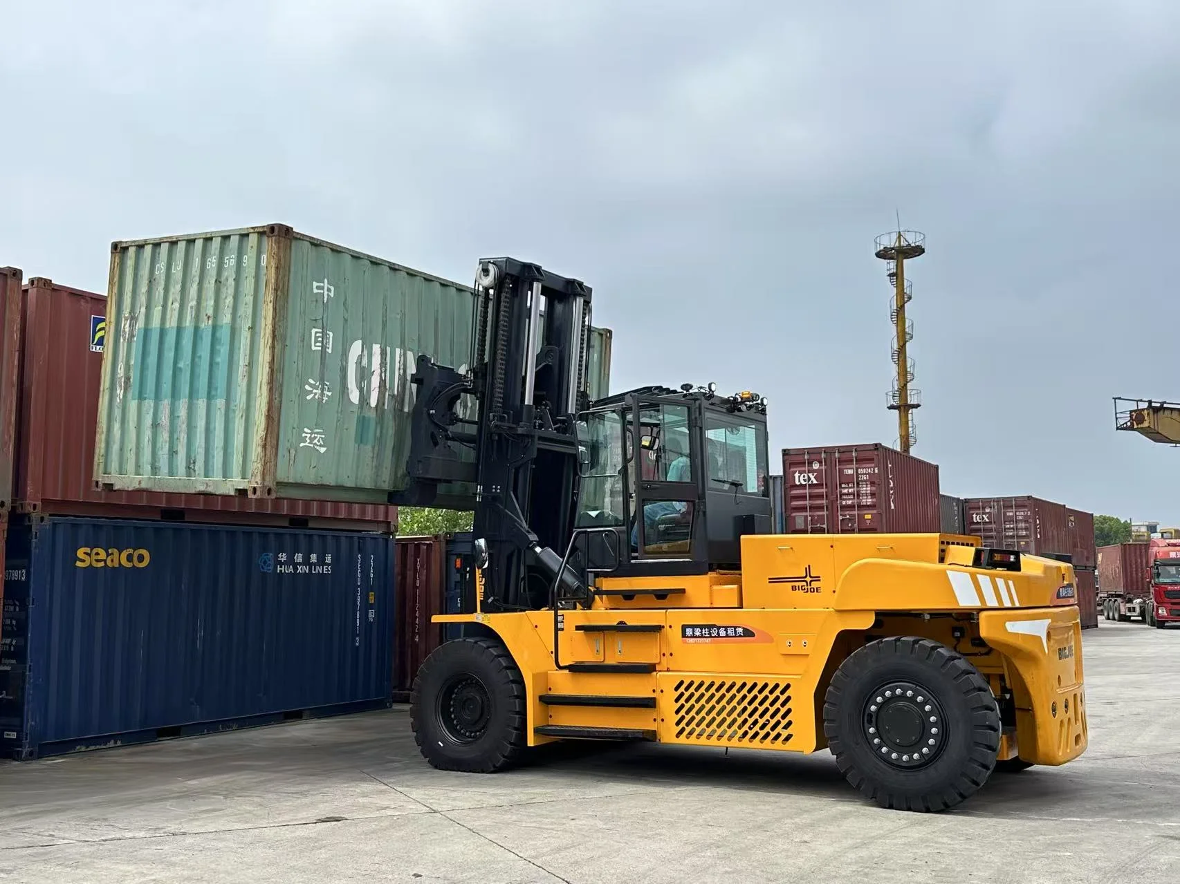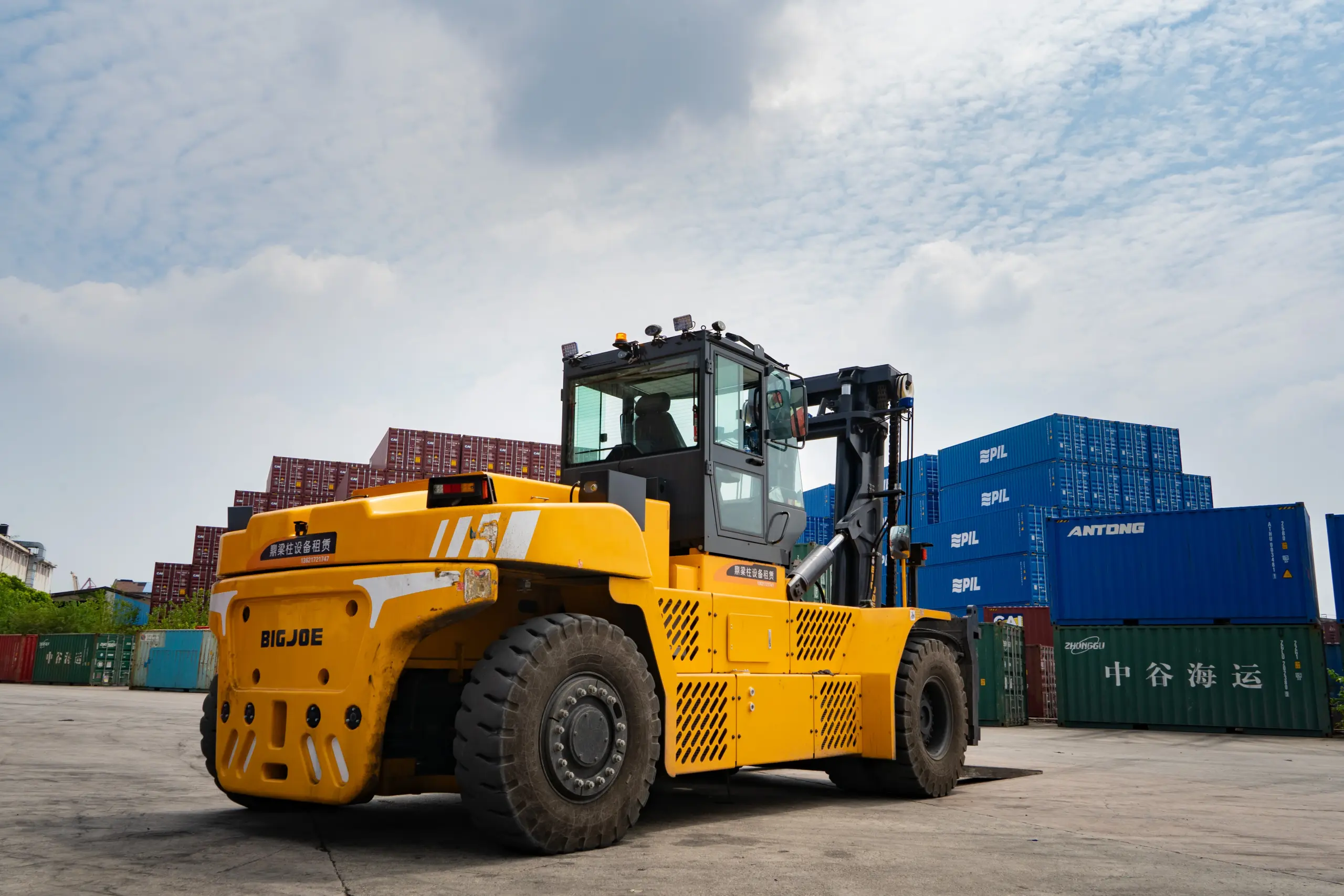 Der EP EFL2503‑HV‑12 hebt bis zu 25 Tonnen bei einem Lastschwerpunkt von 1.200 mm und ist damit ideal für den Umschlag von Maschinen, Stahlcoils, Betonteilen oder großformatigen Industriekomponenten.