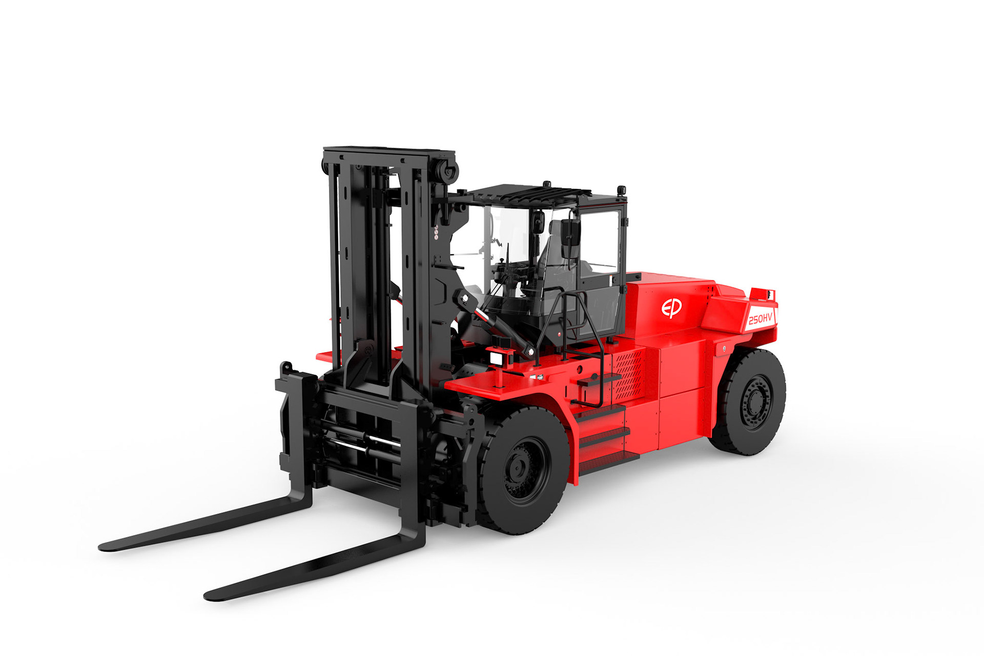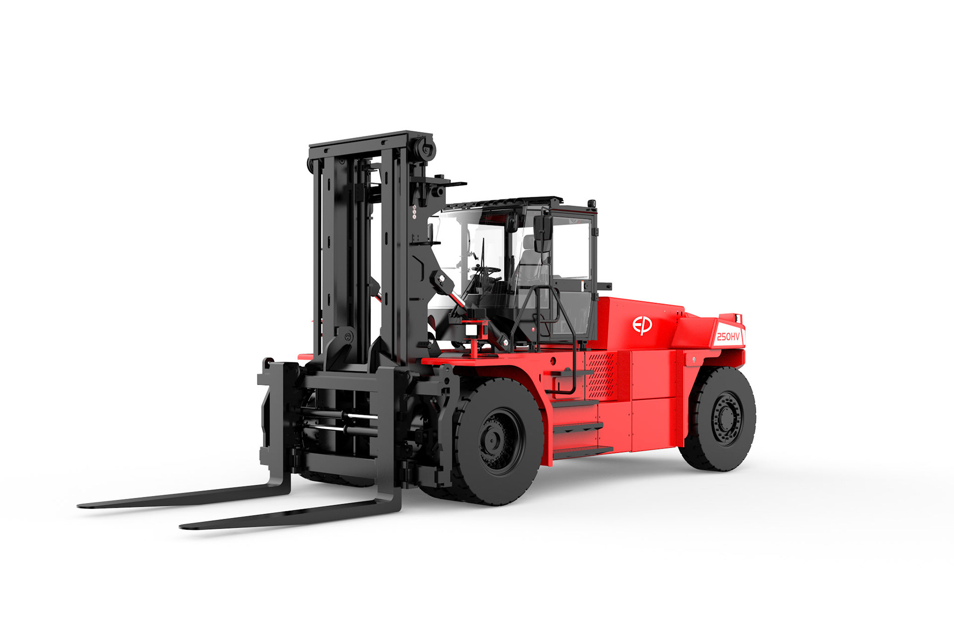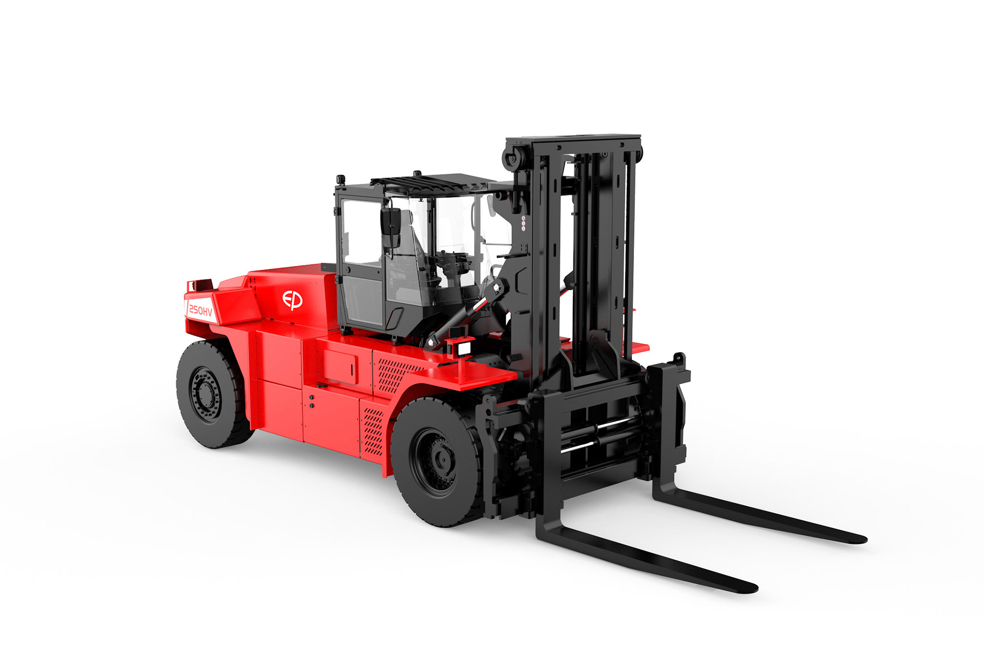 Der EP EFL2503‑HV‑12 steht für eine neue Generation von elektrischen Schwerlast‑Gegengewichtsstaplern. Mit einer Tragfähigkeit von 25.000 kg, einem leistungsstarken 618‑V‑Hochvolt‑Lithium‑Ionen‑System und einem 135‑kW‑Permanentmagnet‑Synchronmotor (PMSM) bietet dieser Elektrostapler eine dieselähnliche Performance bei null Emissionen.