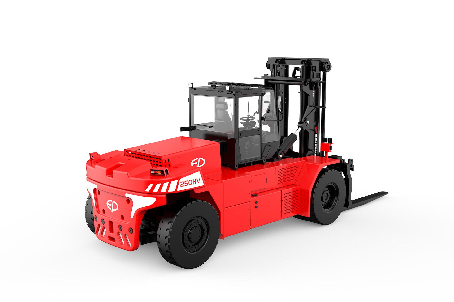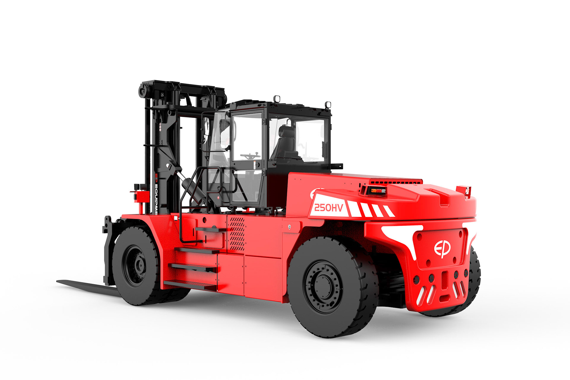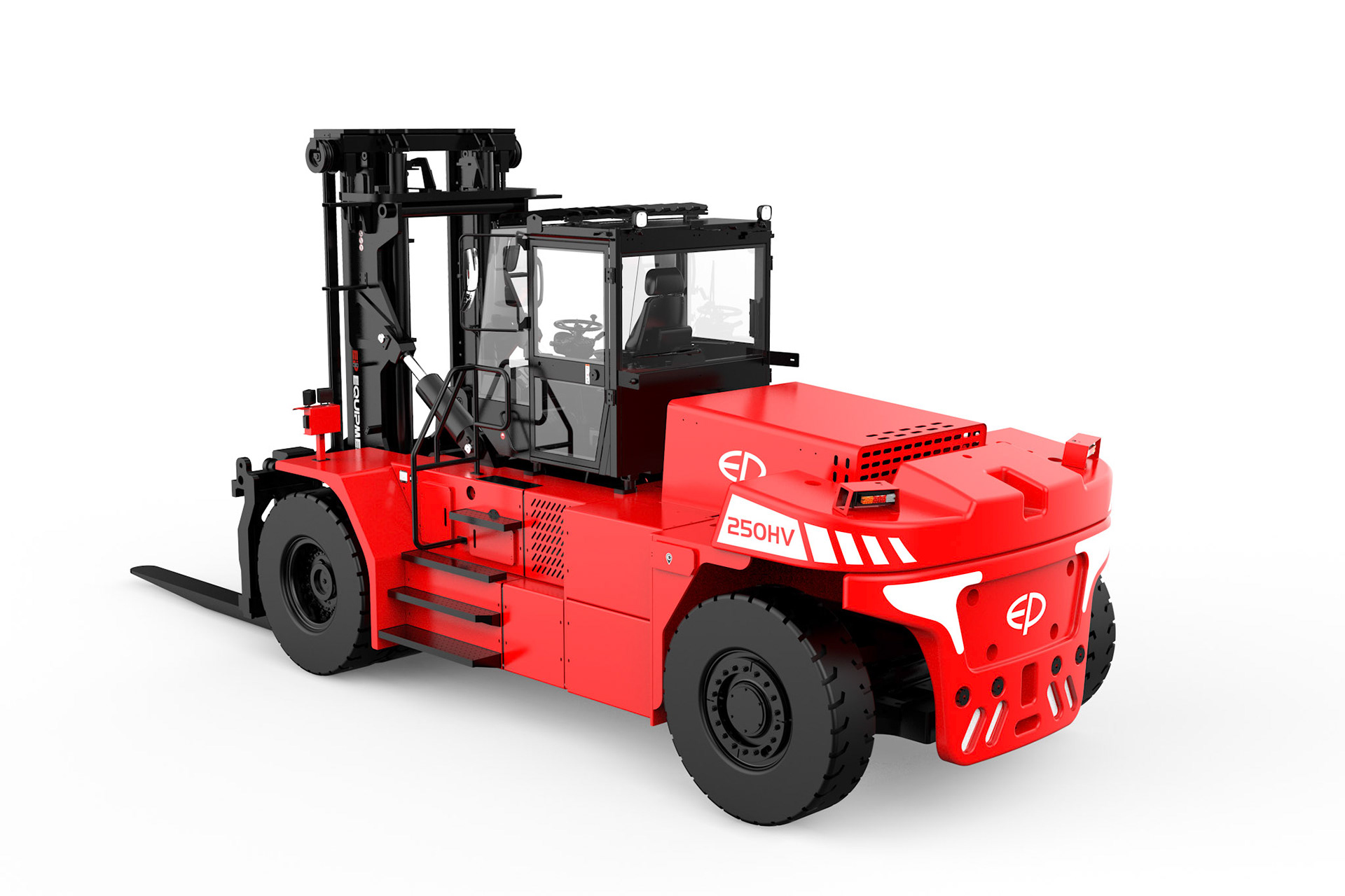 Der EP EFL2503‑HV‑12 steht für eine neue Generation von elektrischen Schwerlast‑Gegengewichtsstaplern. Mit einer Tragfähigkeit von 25.000 kg, einem leistungsstarken 618‑V‑Hochvolt‑Lithium‑Ionen‑System und einem 135‑kW‑Permanentmagnet‑Synchronmotor (PMSM) bietet dieser Elektrostapler eine dieselähnliche Performance bei null Emissionen.